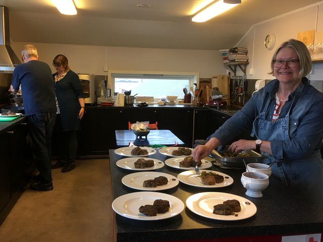 Lofoten-Bergen 2018 -- Kristin ist heute Köchin, Jan und Anita helfen. Suoerfeies Essen, Danke Kristin und Jan.