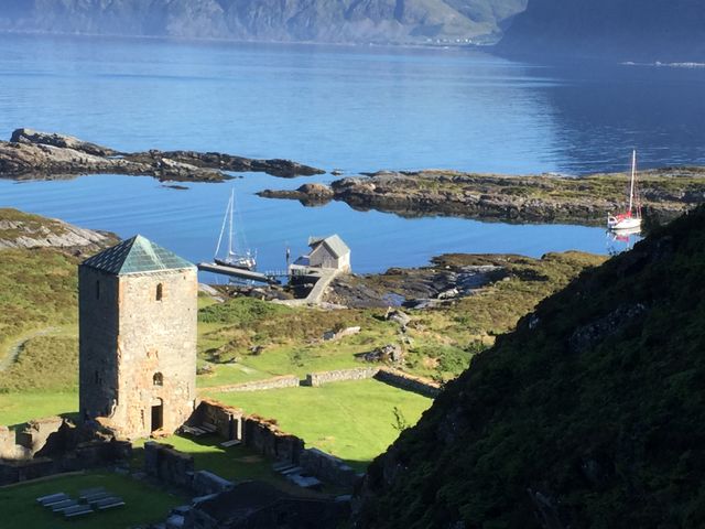 Lofoten-Bergen 2018 -- Klosterruine und Ankerplatz der Insel Selje